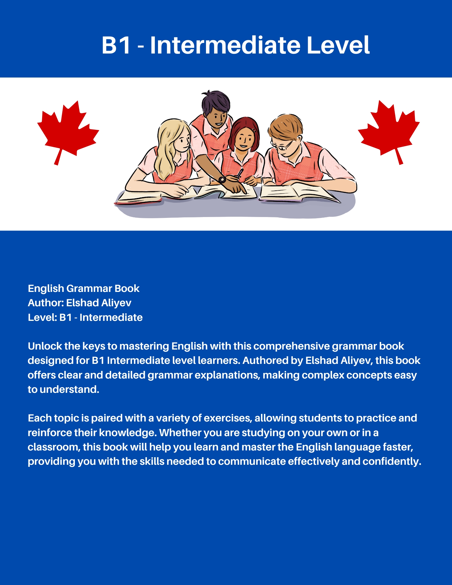 Understanding grammar is essential to mastering any language. Without a solid foundation in grammar, no matter how many words you know, it will be difficult to communicate effectively. This book is a crucial resource for advancing your English skills, as the B1 level serves as a key milestone on your journey to language proficiency. Whether you’re preparing for academic exams like IELTS, TOEFL, or CLB, or simply looking to improve your conversation skills, this book will support you in reaching your goals.